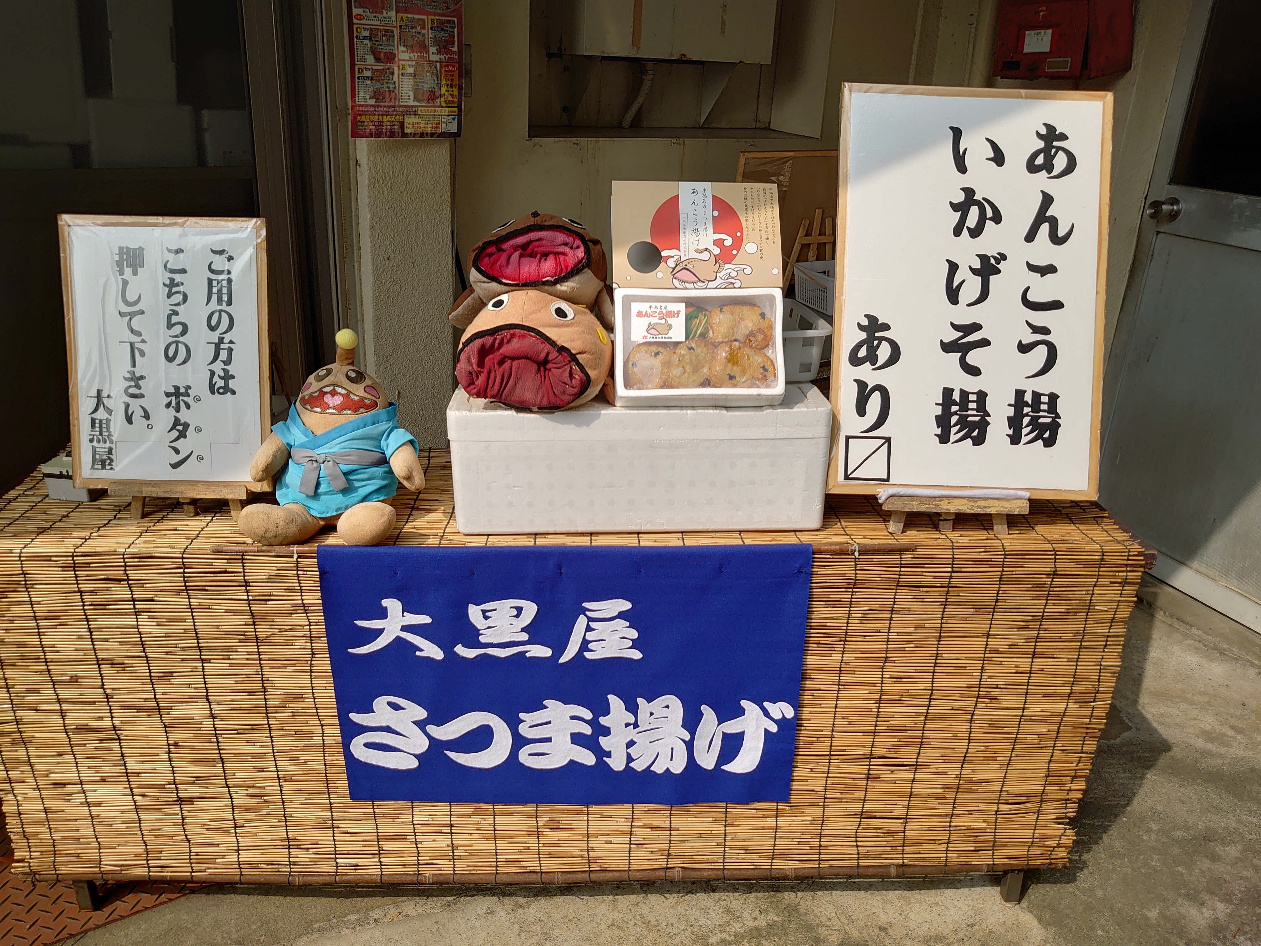 平潟港前にある、手作りのさつま揚げ店です。昔ながらの石臼造りで、きめ細やかなふわふわのさつま揚げを販売しています。 原材料等の高騰により7月1日よりこちらの価格にて販売いたします。